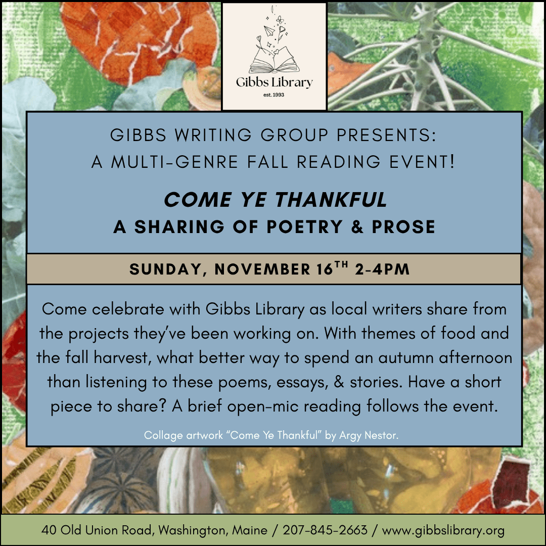 WHAT’S HAPPENING AT GIBBS! Visit our PROGRAMS page and/or contact the library for more details.