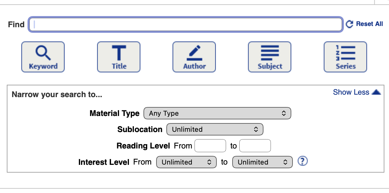 Then, click on Find field, and type in the book’s information (select Key Word, Title, Author, or Subject) beside Find.