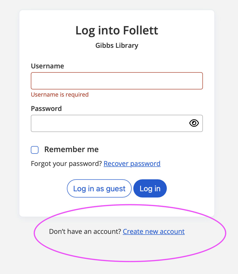 If you have a Gibbs Library card, you can create a login to your library account to renew your materials, request holds, or make a book list. After clicking on Log in at the top right corner of the screen. . .
